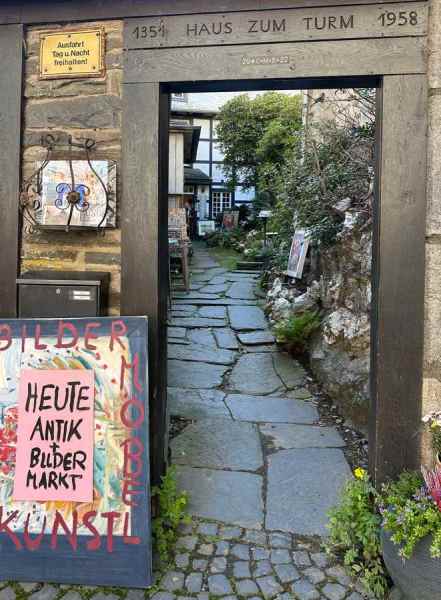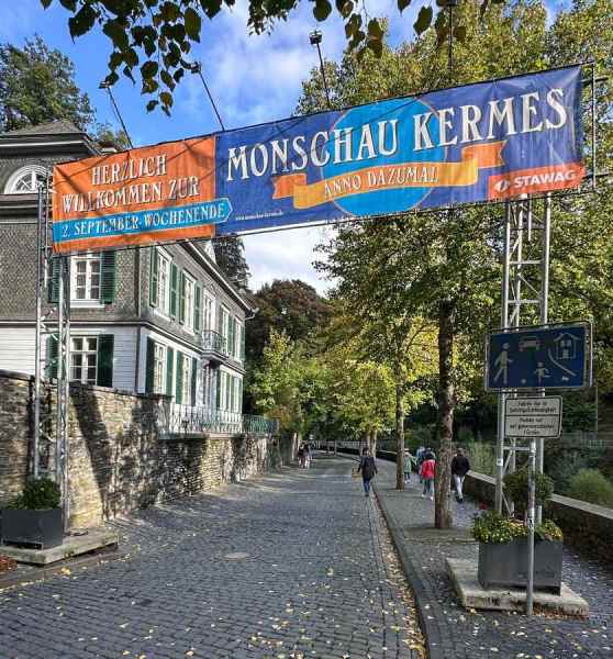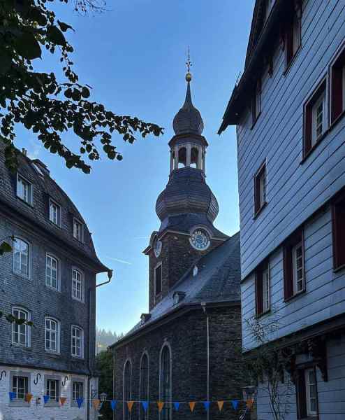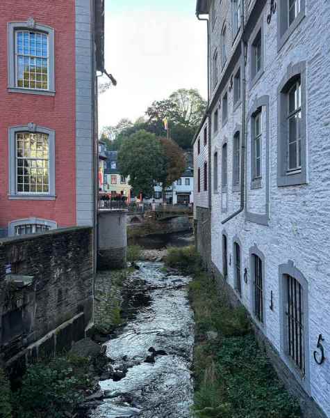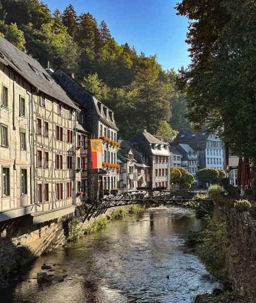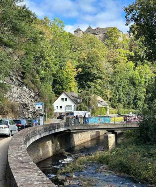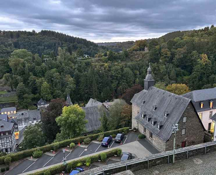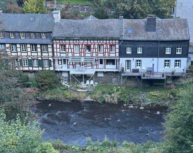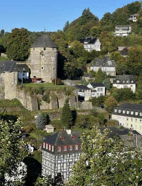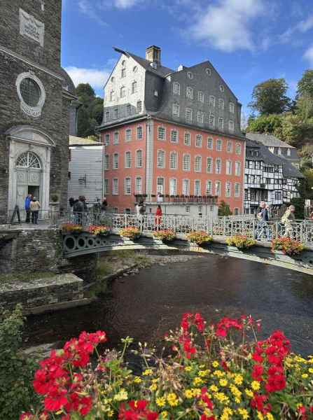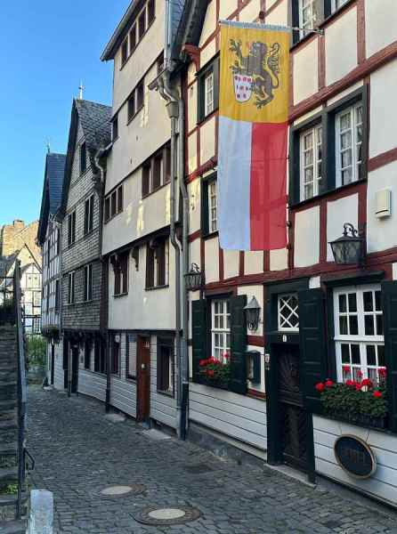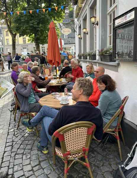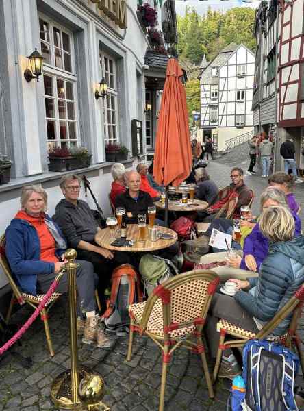 Om 16:00 arriveerde we in het schilderachtige en toeristische stadje Monschau, waar we op een terras in het zonnetje genoten van een welverdiende drink.