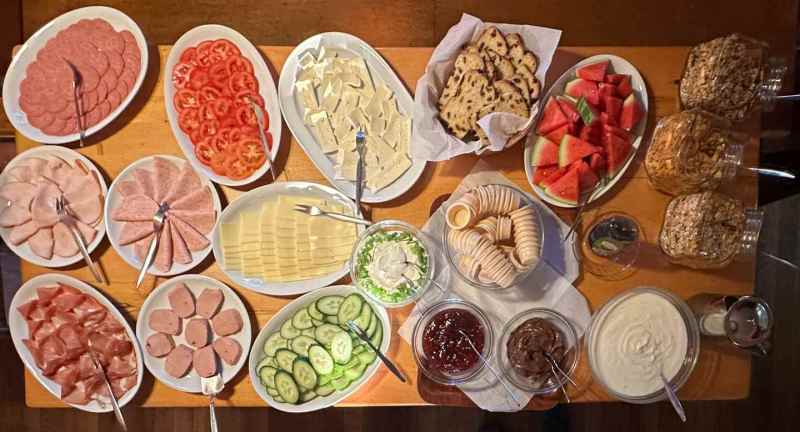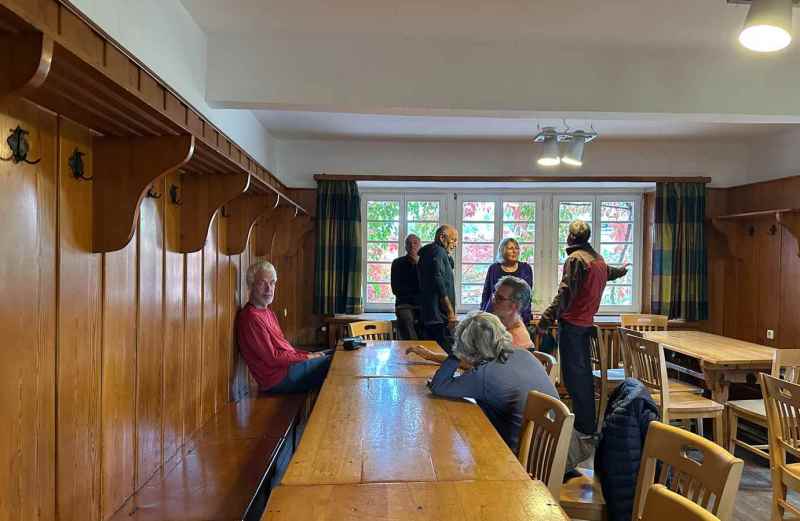 De zondag werden al vroeg de kerkklokken geluid (0700h Erik H) en kon om 0800 h worden gestart met een goed en uitgebreid ontbijt. Met om 9:00 de verzameling voor de retour wandeling..