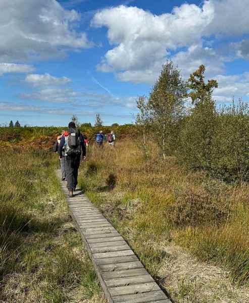 Door Niek, Het traditionele BSG Rotterdam wandelweekend werd dit jaar georganiseerd op 27 en 28 september. De wandeling begon op 27 september bij het informatie centrum Ternell op de Hoge Venen in België. Via een gevarieerd landschap met bossen, heidevelden en rivierdalen ging het richting Monschau met een lunchpauze bij het Kreuz im Venn. Een kruis op een klein rotsmassief waarin een soort van grotje met een Maria beeld. aardig om wat over te lezen in deze link, ook als je in de duivel gelooft. 😉
