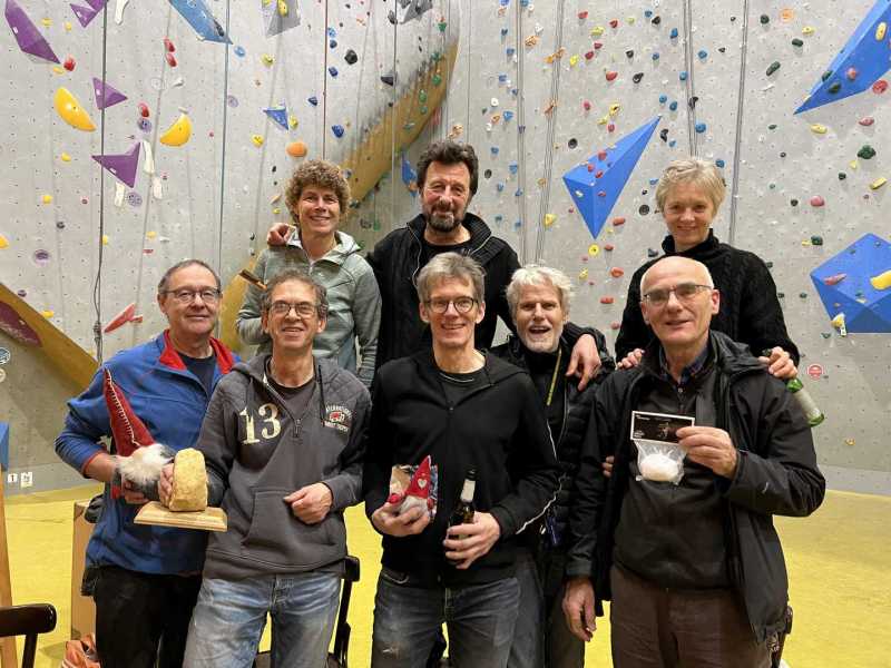 En zo eindigde de klimcompetitie met het uitreiken van de prijsjes die beschikbaar waren gesteld door Bas, manager van de Klimmuur Prinsenland. Pieter die de winnaars toespraak liet Erik de boulder wisseltroffee houder en overhandigde de boffer met de 1ste prijs, een pofzak met een biertje van Ramses. ML was de gelukkige met de 2de, zij kreeg een borstel waarmee ze grepen kan schoonmaken en haar te helpen in 2024 tot nog grotere hoogte te komen en wellicht komende concurrent van Erik. De 3de tevens aanmoediging prijs was voor Henk S, die ook boven zijn competenties was uitgestegen ontving een pofbal als prijs.