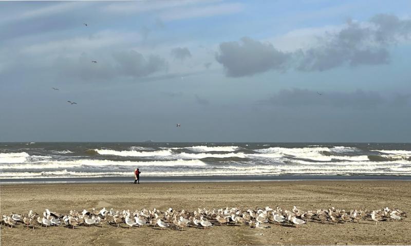 Zodra we op het stand komen ligt iedereen te liggen te genieten van het zonnetje terwijl in de verte donkergrijze wolken binnen komen…  Het gaat hozen tegen vijven zegt onze weerman en pathfinder Paul.  Erica heeft het 15 minuten gekregen en gaan richting Rockanje via de vloedlijn.  Heerlijk die ruimte om je heen en in je kop.